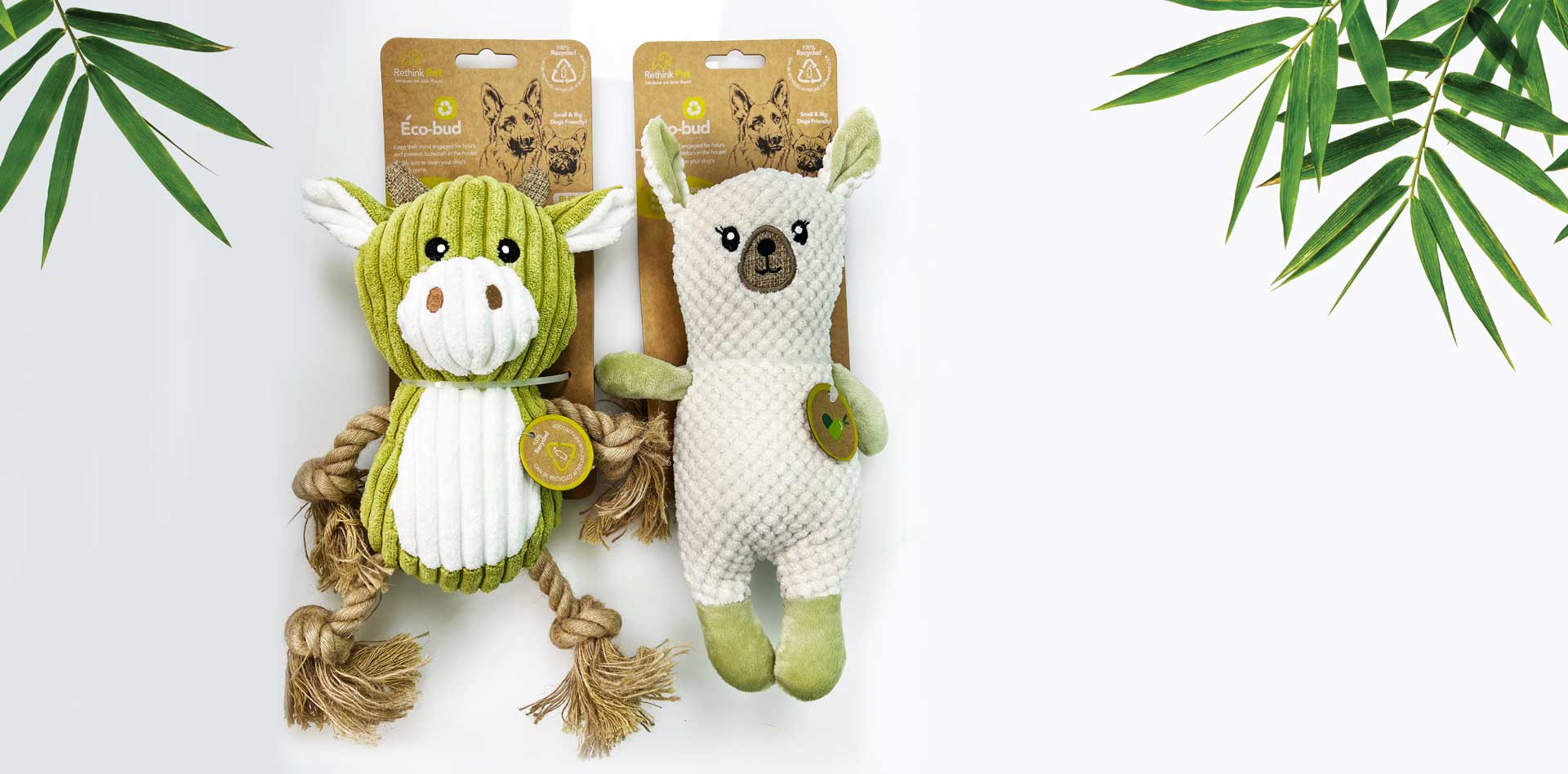 Our eco-friendly durable, yet soft toys. Made with high quality densely-woven materials and 100% recycled plastic water bottles. Add to cart Eco-Bud Our eco-friendly durable, yet soft toys. Made with high quality densely-woven materials and 100% recycled plastic water bottles. Add to cart Keep your dog engaged and happy! Add to cart Made with high quality densely-woven materials and 100% recycled plastic water bottles, the Éco-bud toys make the perfect plush toy that’s both fun for your pet and good for the planet. Add to cart
