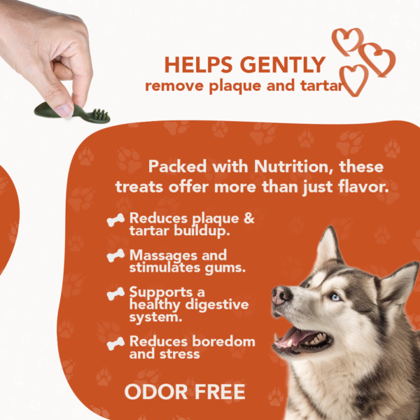 The perfect blend of taste and oral health for your beloved canine. Each treat is shaped like a toothbrush to effectively clean your dog’s teeth, reduce plaque and tartar buildup, and promote fresh breath. With essential nutrients to support overall dental health, give your furry friend the gift of a healthy smile today!